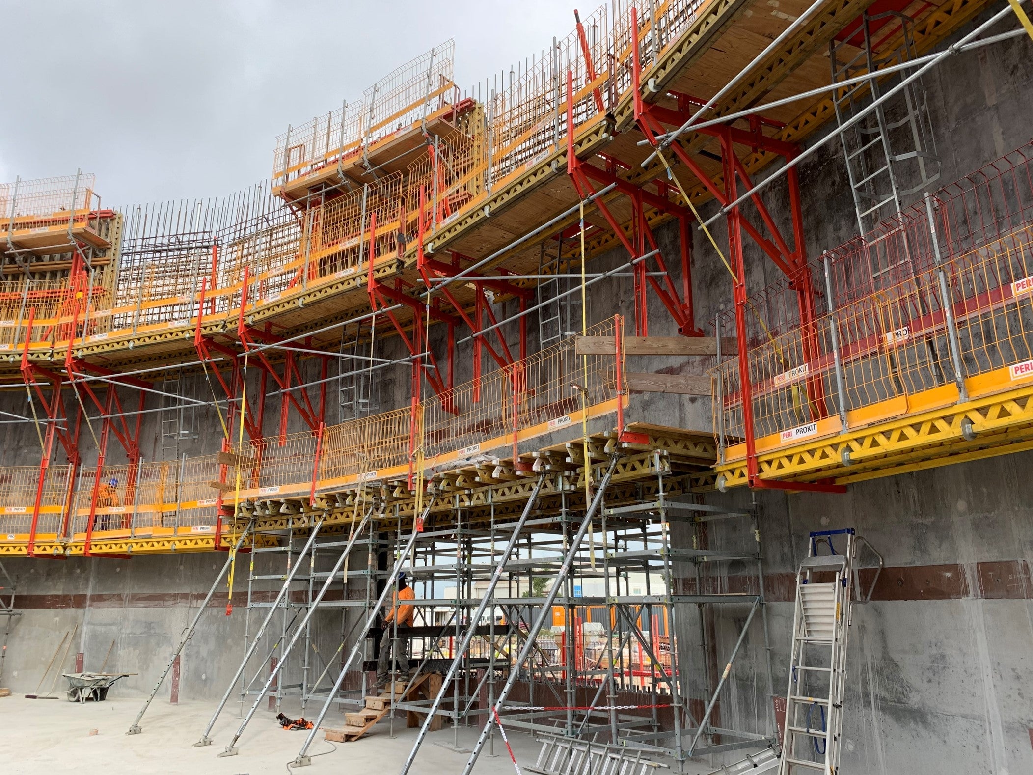 Vue sur l’ouverture basse du réservoir, un étaiement PERI UP reprend les charges béton.