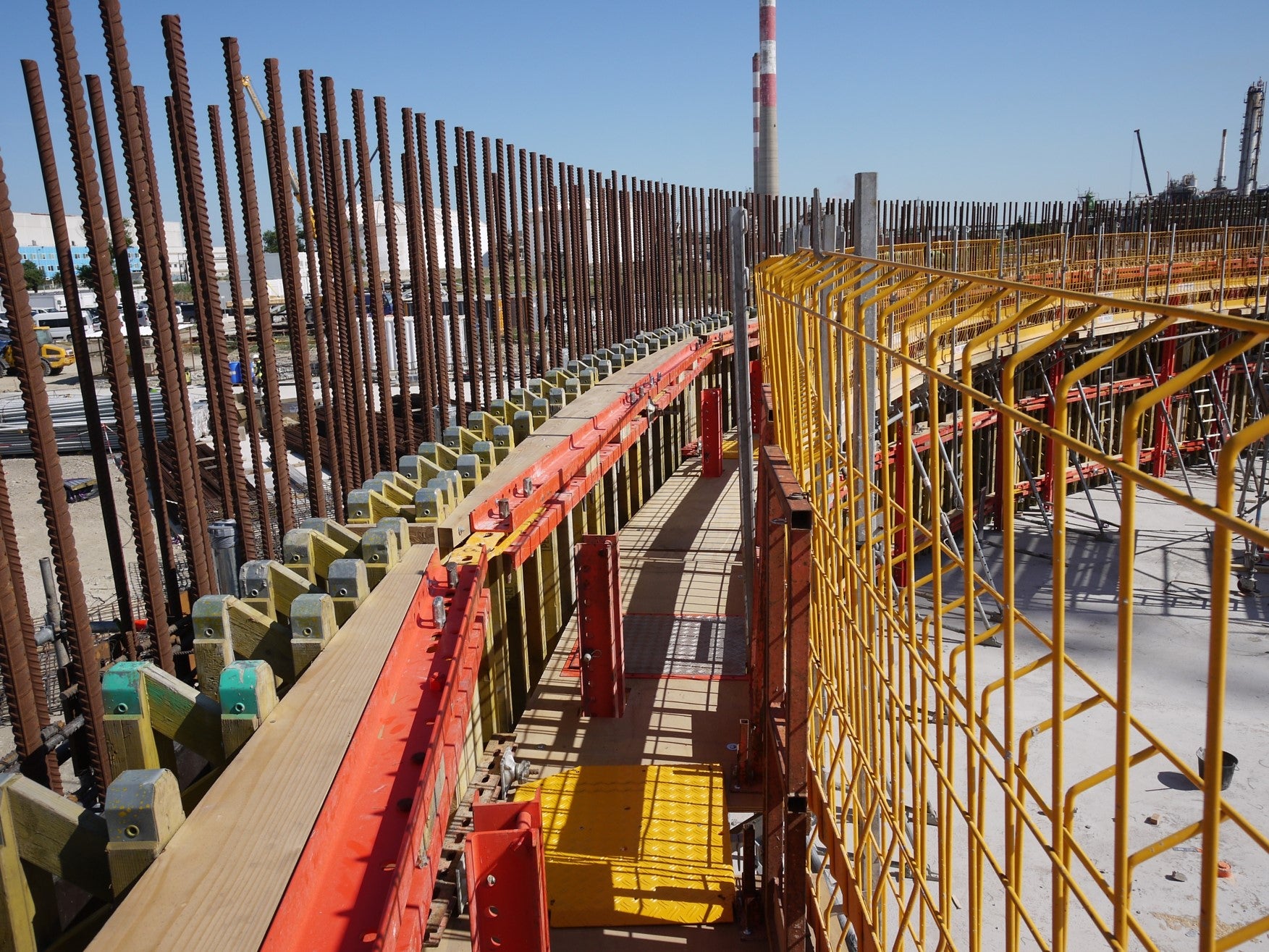 Partie supérieure du coffrage, avec vue des profilés verticaux du grimpant CB240.