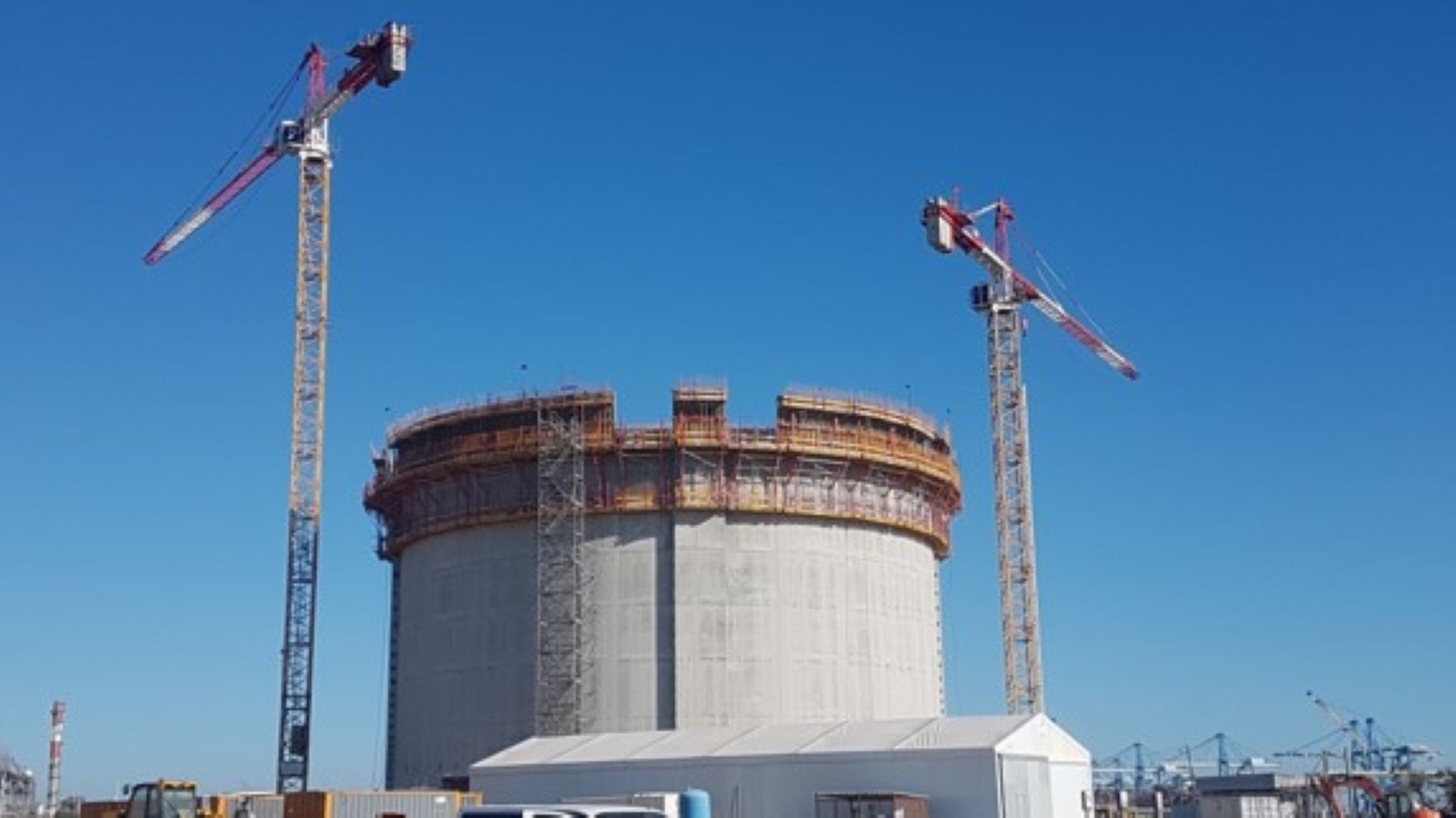 Vue d’ensemble du réservoir avec au centre un des bossages. Les plateformes CB240 assurant l’entière périmétrie.
